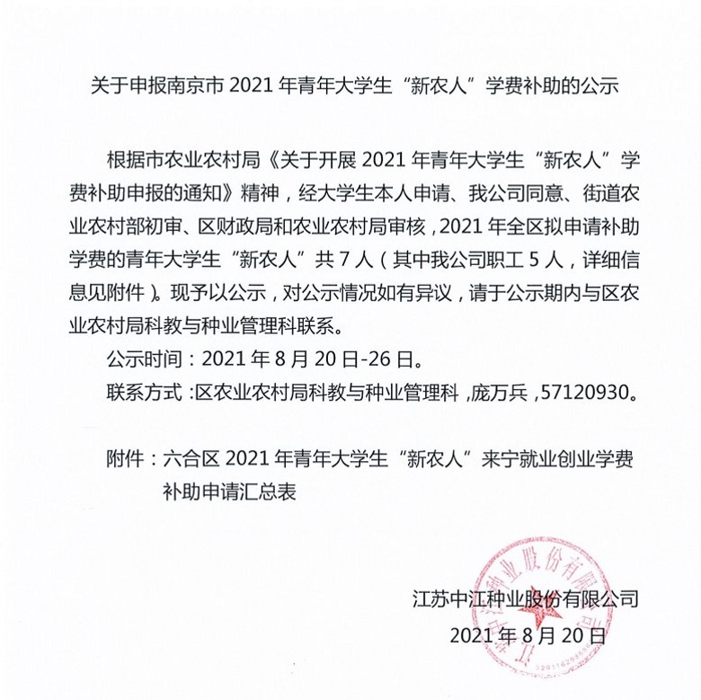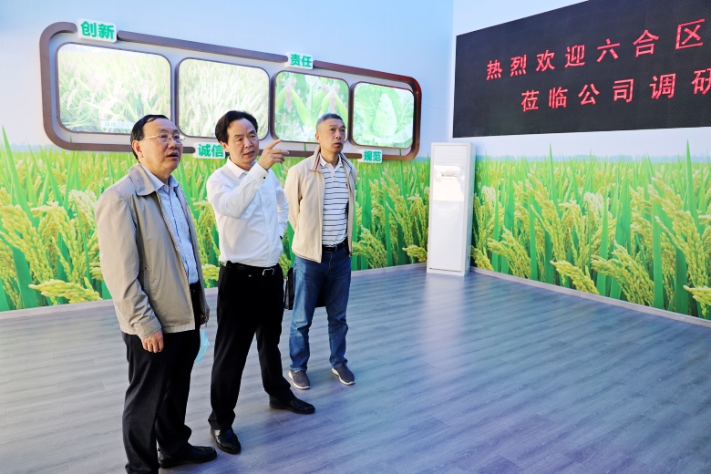 5月21日上午,江苏省六合区政协副主席陈定宝一行,在六合区农业农村局管东松科长的陪同下,莅临公司考察指导。  座谈会上,蒋红云总经理结合“如何解决种子‘卡脖子’难题、打赢种业翻身仗”,重点汇报了公司在加快种业全产业链建设;构建从种子到餐桌的“种+粮”模式;建立“粮食银行”等方...  [详细]
