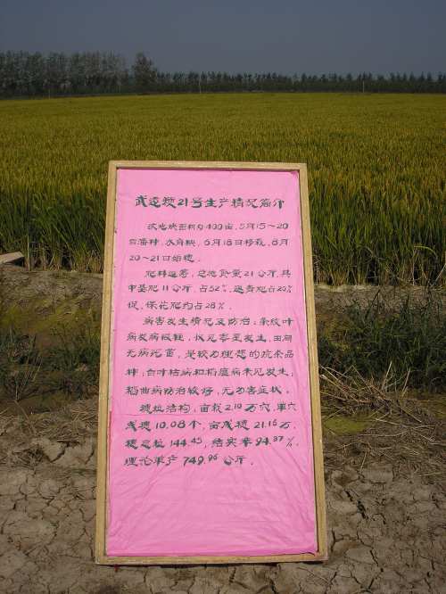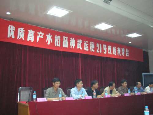 2006年9月21日上午,我公司邀请淮北地区有关县市农业局领导和种子经营单位代表在五图河农场召开水稻新品种武运粳21号现场观摩会。在生长大田里,武运粳21号以其突出的表现,赢得与会专家领导的一致好评。