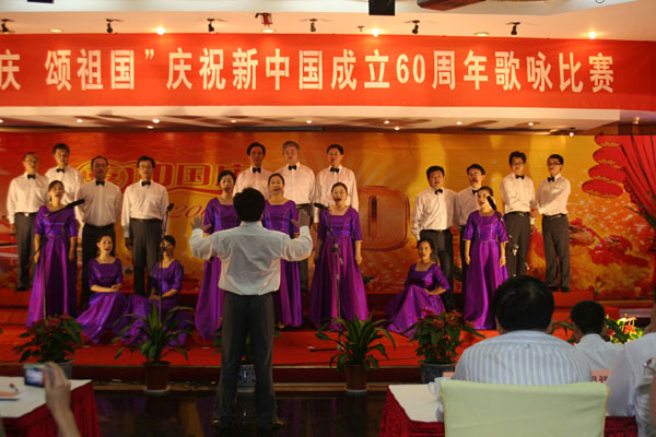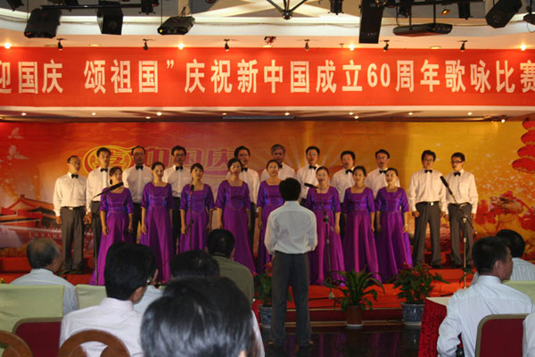 我公司21名员工代表,于29日下午参加了省农林厅组织的“迎国庆、颂祖国歌咏比赛”,在公司领导的直接关心、参与下,通过全体参赛人员的积极参与和共同努力,我们的合唱得到评委会的一致好评,荣获二等奖。我们的参赛歌曲是《映山红》、《游击队歌》。