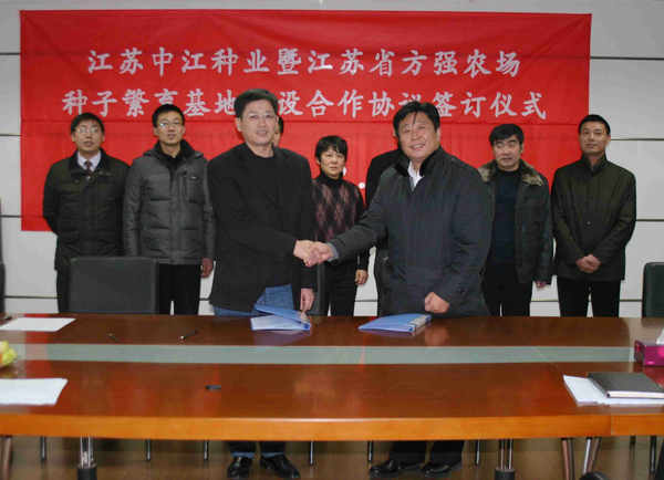 2012年2月1日,江苏方强农场集团有限公司与304am永利集团在南京签署种子繁育基地建设合作协议。参加合作签字仪式的有江苏方强农场集团公司董事长施东华、副总经理张建生、副总经理黄英以及生产科、企业管理科、农场种子公司负责人,江苏304am永利集团公司总经理包月红、副总经理蒋红云以及财务部、生产部负责人。