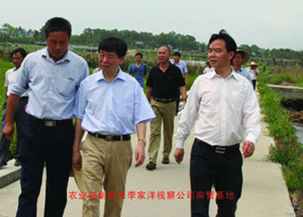 4月13日,农业部副部长、中国农业科学院院长李家洋院士在公司南繁基地,重点考察了我公司利用中科院遗传所提供的超高产水稻理想株型基因(IPA1)材料配制的杂交水稻新组合表现情况,对该超高产基因材料配制的杂交水稻组合的产量潜力、应用前景给予了的肯定。并对下一步科研工作做了具体的指导,希望中科院遗传所刘贵富博士及其团队与304am永利集团进一步加强科研合作,充分利用各自的平台和优势,为我国的农业科研和生产作出应有的贡献。