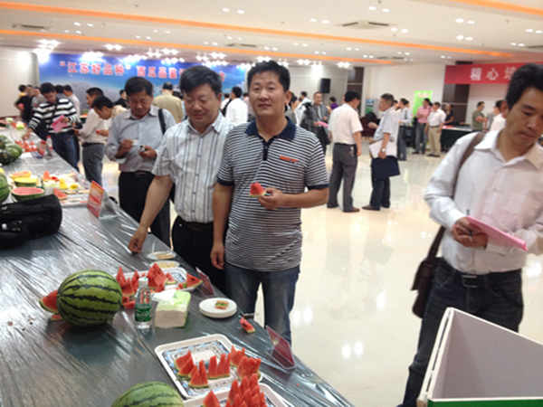 为加快优质西瓜品种的推广,促进我省西瓜产业发展,满足城乡居民消费需要,由江苏省种子管理站、江苏省种业协会主办,东台市农业委员会、盐城市蔬菜所承办的“江苏好品种”西瓜品鉴评比活动于6月4日在东台市顺利举行。我公司凌兆凤副总经理携公司蔬菜部参加了本次活动。