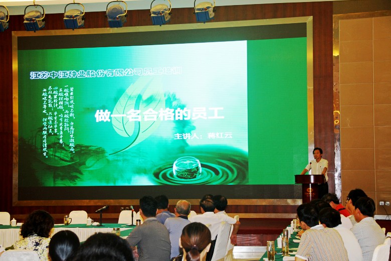 总经理蒋红云总结了公司上半年主要工作业绩:一是在“新三板”成功挂牌,绿苑园林子公司取得了一级资质;二是与分(子)公司、部门签订了责任状,确保完成全年目标任务;三是合作引进的新品种反响良好;四是科研育种工作取得好成绩,形成连续性,走上良性发展道路;五是生产基地已拓展到1.3万多亩。会上,蒋红云还以《做一各合格的员工》为题,为与会员工上了一堂培训课,他要求公司员工进一步改进工作作风,提高“精、气、神”,强化纪律观念,提升业务本领,确保完成下半年工作任务。