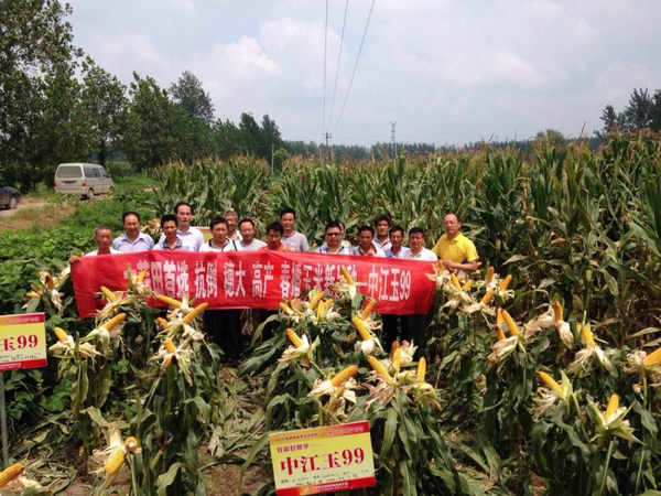 公司玉米部联合各地经销商组织零售商代表及种田大户进行了田间观摩。得到零售商和种田大户的一致认可:“304am永利集团玉99”果穗大、籽粒深、抗病性抗倒性好、熟期较同类型品种早,是一个综合性状优良的杂交玉米新品种。