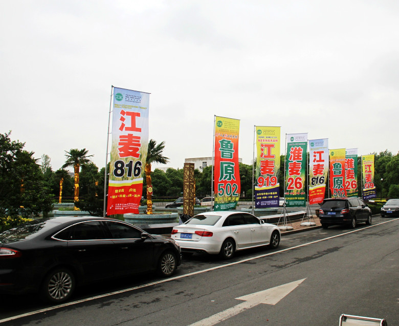 24日上午,与会人员乘大巴先后赶赴泗洪石集镇、洪泽湖农场二分场,现场观摩了小麦品种江麦816、稳产抗病品种淮麦26、优质高产品种江麦919、即将通过省审的自有品种江麦23以及航天育种品种鲁原502。这几个品种的田间表现得到了各位经销商及种田大户的一致认可。