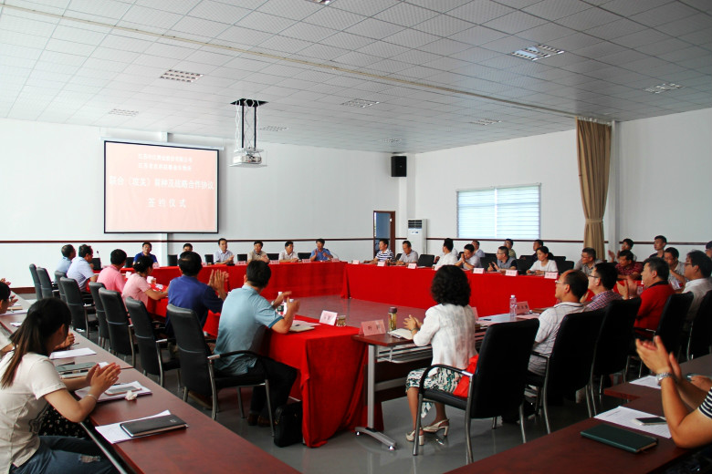 为适应现代种业发展的新形势,加强科企合作,整合优势资源,协同创新,联合攻关。7月21日下午,公司与江苏省农业科学院粮食作物研究所签约仪式在公司会议室举行,双方就新品种“联合(攻关)育种及开发”达成战略合作。江苏省农委副主任蔡恒,江苏农林职业技术学院党委书记俞卫东、副院长周兴元,江苏省农科院副院长黄俊、沈建新出席会议;省农委、学院、农科院及公司相关领导、专家参加会议。会议由董事长王福银主持。