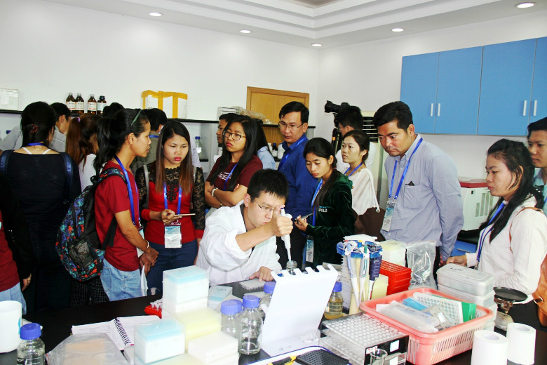 9月21日上午,由农业部外经中心组织的柬埔寨水稻生产及稻米加工研修班学员一行30余人来公司参观考察。学员们先后参观了公司种子质检中心、种子仓储加工中心,科研育种基地,并与现场技术人员进行了学习交流。