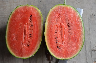 该品种由杭州市良种引进公司于2011年从我公司引进。 该组合2012年参加浙江省设施小型西瓜省外引种生产试验,平均亩产1407.6公斤,比对照‘拿比特’增产8.7%。春播从开花到果实成熟33.0天,第一雌花节位8.3节,雌花节位间隔5.9节。果实椭圆型,头茬瓜果形指数1.2,果皮浅绿色,覆墨绿色狭齿带,表面光滑,无棱沟,平均单瓜重2.6公斤。果皮厚0.6厘米左右,瓤色红色,汁液多,口感好,瓤质脆。现场考察实测中心折光糖度13.2度,边缘折光糖度9.2度;耐储运性较好。经浙江省农科院植微所2012年苗期枯萎病抗性鉴定,平均发病率为55.0%,病情指数为47.5,为中抗枯萎病。经2012年省品审会办公室组织的品质品尝,综合评分为90.0分,比对照高3分,位居第1位。