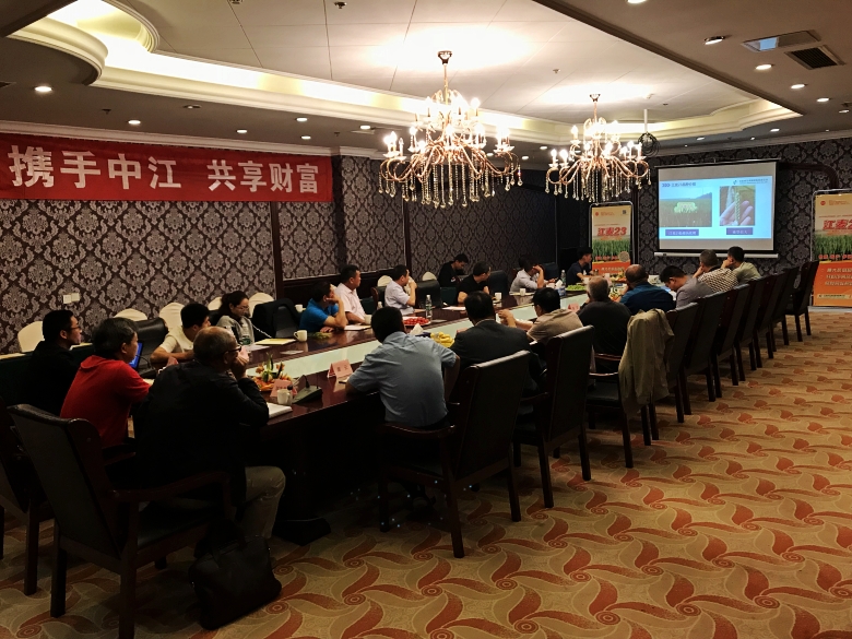 观摩会后,在泗洪北辰国际会展中心召开了座谈会,公司副总经理凌兆凤、宿迁304am永利集团有限公司总经理刘志勇出席会议。会议由公司市场部经理王文主持。王文经理详细介绍了“江麦23”品种来源、产量水平、特征特性以及近两年来的试验示范综合表现;随后宿迁304am永利集团刘志勇总经理对该品种近两年在宿迁地区的田间表现做了详细介绍,并点评了“江麦23”的几个突出优点:穗粒结构合理丰产性好、赤霉病抗耐性强、株高矮茎杆壮抗倒性强;还引申介绍了淮北麦区叶枯病、纹枯病今年的发生势态,选择代理小麦品种要注重安全性。最后公司凌兆凤副总经理做了总结性发言,他表示经历风雨方显“江麦23”品种真本色,公司将新品种推介会安排到五月下旬召开,基于对“江麦23”品种抗性的信心,让大家看到品种后期的真实表现。公司“江麦系列”新品种在以后的三到五年内会在市场上形成强有力的冲击,希望通过与各位共同合作,打造“江麦”品牌、铸就“304am永利集团”伟业。