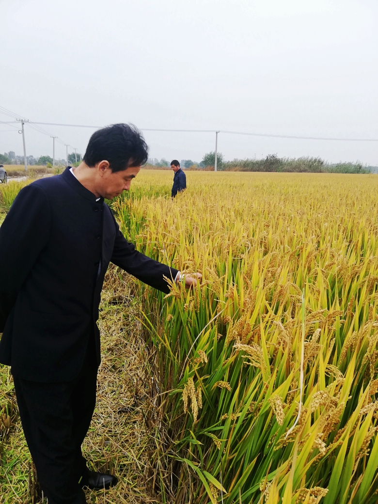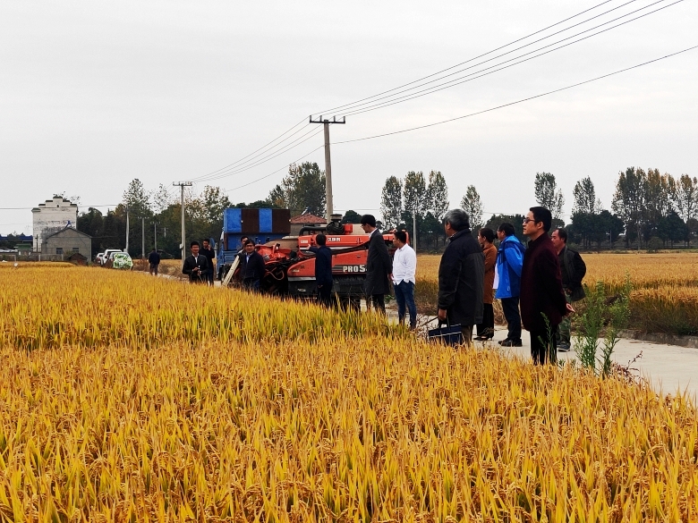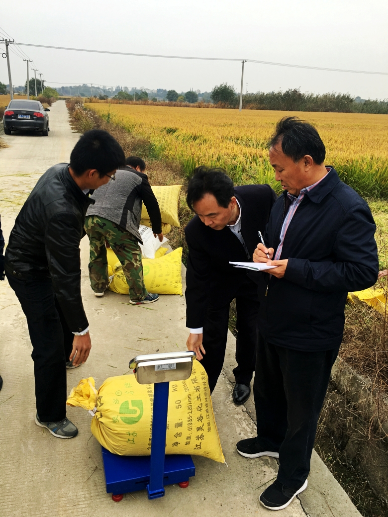 蒋总在“宁粳8号”江宁淳化社区百亩示范方测产验收现场