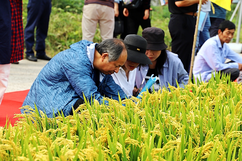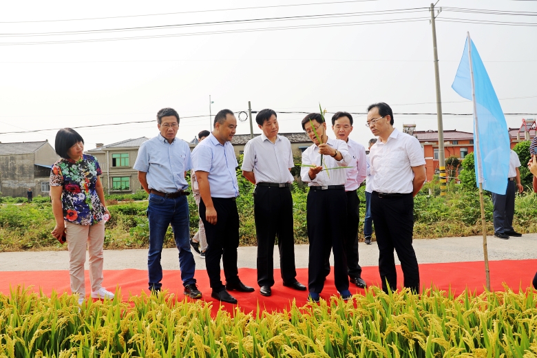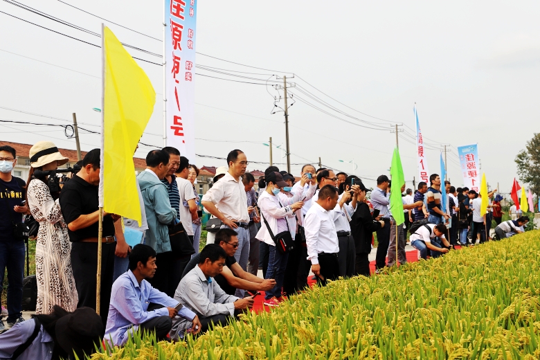 参会代表现场观摩了白马湖农场170亩“佳源粳1号”绿色高质高效生产示范方和“江苏好品种”展示田的“佳源粳1号”,即将收获的“佳源粳1号” 穗型大,秆青籽黄粒饱,呈现一派丰收景象。参加观摩的领导、专家和代表对“佳源粳1号”交口称赞,蔡厅长深入田间查看长势情况。示范方理论测产809.6公斤。