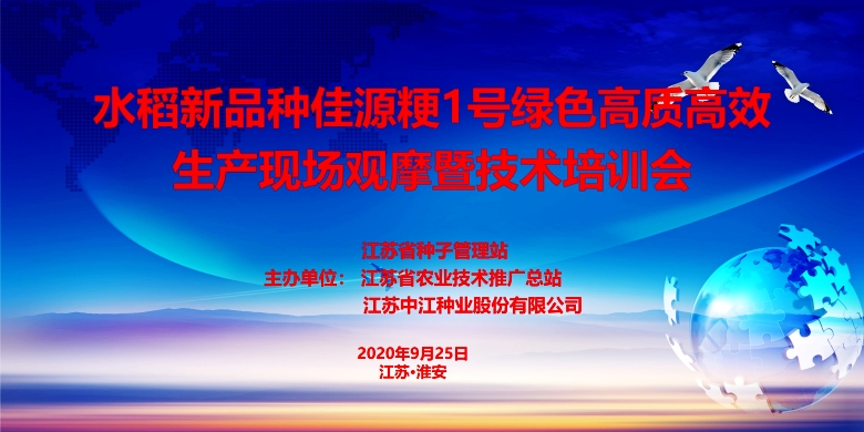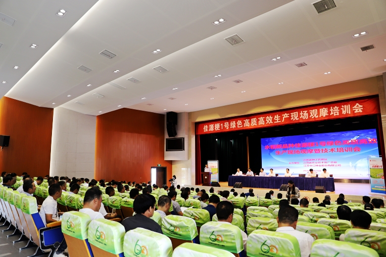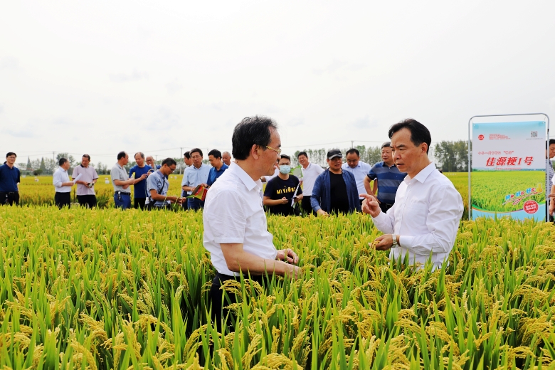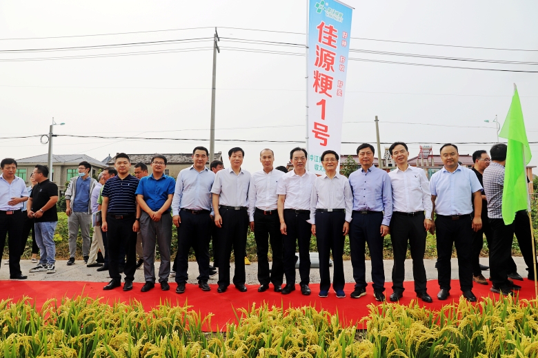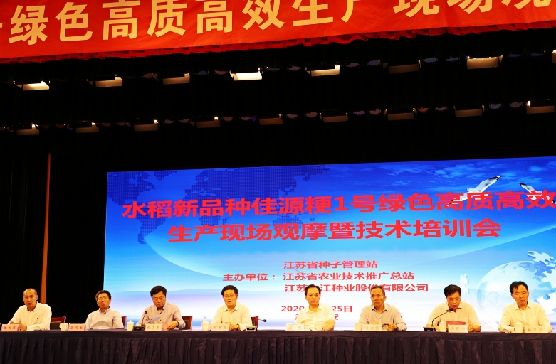 9月25日,公司中熟中粳稻新品种“佳源粳1号”绿色高质高效生产现场观摩培训会在淮安市白马湖农场成功召开。江苏省人大常委会原副主任俞敬忠,江苏省农业农村厅副厅长蔡恒,江苏省种子管理站站长何金龙,江苏省农业技术推广总站二级研究员倪玉峰出席会议;苏北五市农业农村局分管局长、种子管理系统、农技推广系统代表,公司淮北地区经销商代表及种田大户代表220余人参加会议。农业农村厅二级巡视员俞卫东主持会议,白马湖农场党委书记姚春华致欢迎词。淮安市委副书记张国梁和副市长肖进方会前到宾馆看望了参会代表。