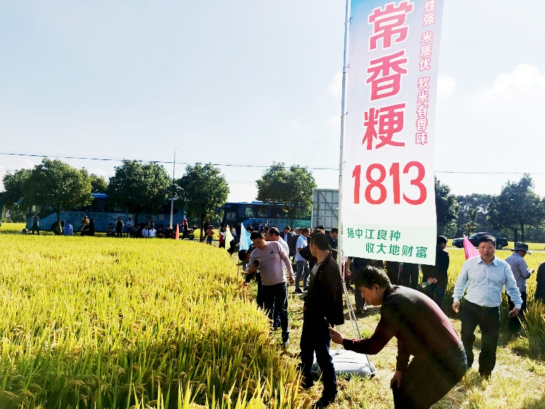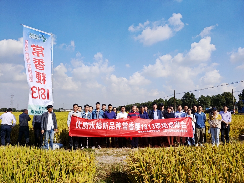 10月11日在江南福地常熟,我公司和常熟市农业科学研究所联合召开常香粳1813现场观摩会。常香粳1813是常熟市农科所最新育成并通过审定的早熟晚粳水稻品种,集米质优、熟期适中、抗倒性强、中抗稻瘟病、稻米有香味等诸多优点于一身,适宜在江苏省沿江及苏南地区种植。