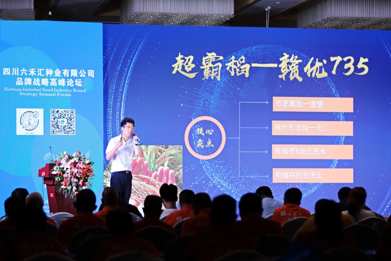 28日,在品牌战略高峰论坛上,六禾汇总经理胡辉详细介绍了“赣优735”在川陕渝的表现,总结了超霸稻“赣优735”的四个核心卖点:节肥高效一道清;株叶形态独一无二;准部颁一级优质米;稻瘟病抗性突出。并表示,有信心把“赣优735”做成西南片区的重点品牌。