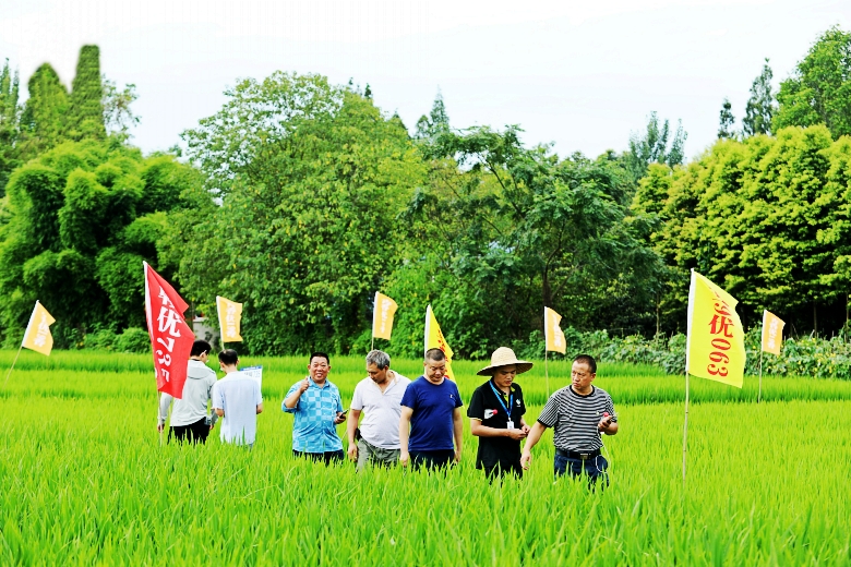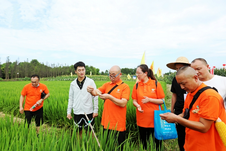27日,四川六禾汇种业有限公司组织了品种田间观摩会,全体参会代表到成都新津区试验基地实地考察观摩品种,公司优良杂交水稻品种“赣优735”“荃9优063”在现场展示。公司川陕渝区域负责人奚修晴,就品种的特征特性、田间管理向与会代表做了详细的介绍。参会代表们从品种的株叶形态、分蘖性、抗病性等多方面考察“赣优735”“荃9优063”的田间表现后,纷纷表示这两个品种不仅易管理,产量也很高,对接下来的品种推广信心倍增。