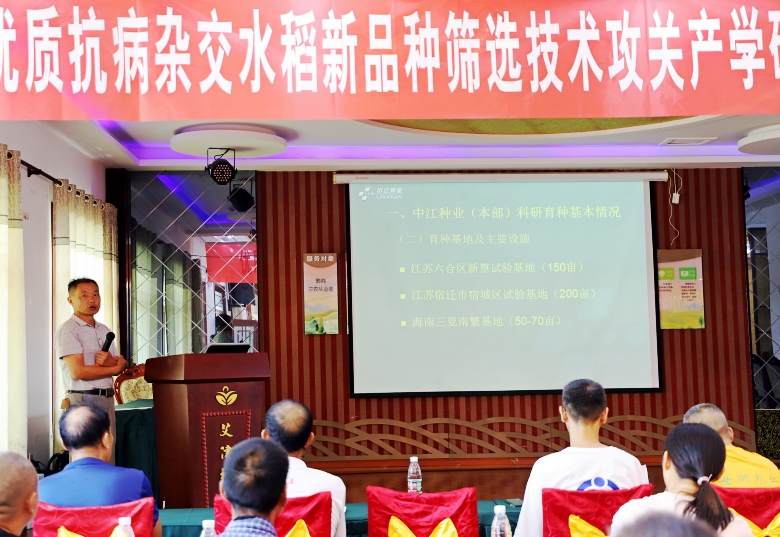 9月6日,由我公司主办的优质抗病杂交水稻新品种筛选技术攻关产学研合作创新基地现场观摩培训会在六合新篁召开。培训会采取田间观摩与专题培训相结合的形式,六合区农业农村局副局长唐根胜、江苏农林职业技术学院农学园艺学院党委书记杨宝林、现代农业教研室主任赵艳岭参加会议,公司总经理蒋红云、科研总监罗德祥以及六合区各街道农业服务中心主任、种子经销商及部分种田大户代表,共计90余人参加会议。