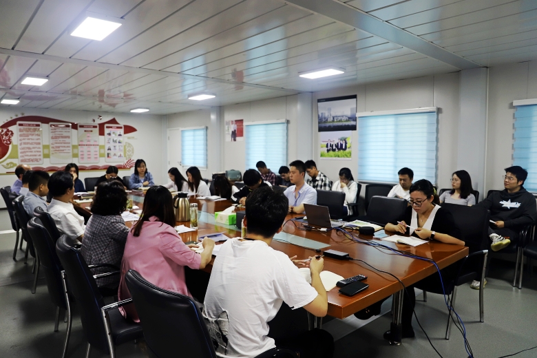(党群)办公室主任叶萍就公司申请成立团组织进行宣传动员;并带领大家学习了员工手册、规章制度、企业文化等;同时分享了董宇辉与刘大铭的访谈视频。