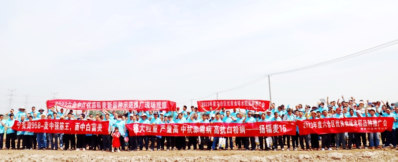 5月16日,公司在六合区程桥街道金庄基地顺利举办“2022六合304am永利集团优质稻麦新品种示范推广”观摩活动。来自六合区的种子经销商及种植大户代表近300人参加会议;公司副总经理凌兆凤、刘永健,总经理助理王文及水稻部全体人员参加会议。