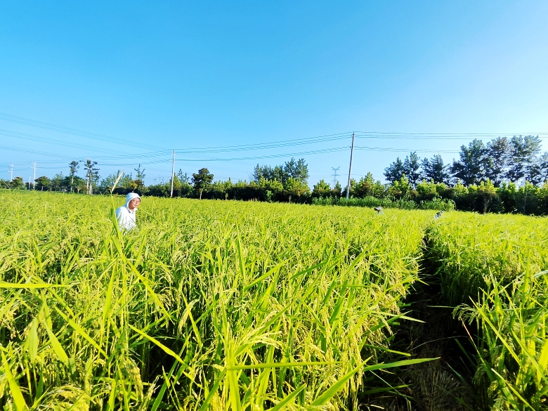九月,秋粮收割陆续展开。行走在乡间田野,金色的田野里稻香四溢,一束束饱满的稻穗弯下了腰,在蓝天白云的映衬下,构成一幅靓丽的丰收画卷。