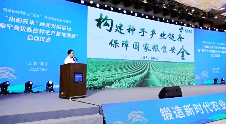 9月16日,公司总经理蒋红云受邀参加了阜宁县举办的“水韵苏米”种业发展论坛暨“阜宁县优质良种生产基地项目”启动仪式。中国农科院原院长、教授翟虎渠,省农业农村厅一级巡视员唐明珍,盐城市副市长黄希别克·努尔旦出席活动,县长许根林参加活动。