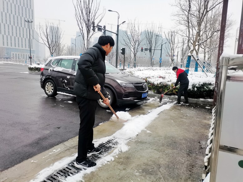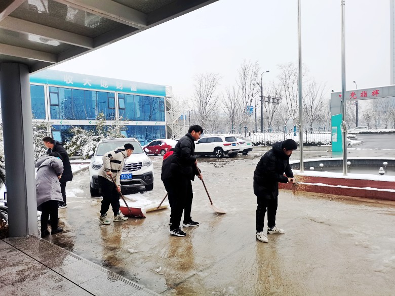 虽寒风凛冽,路面积雪厚重,但小伙子们不畏严寒,挥舞着铁锹、雪铲、对公司大门前、人行道及内部广场的积雪、残冰进行了清扫。大家齐心协力,相互配合,铲的铲、推的推、扫的扫,干的热火朝天,忙碌的身影构成了一道亮丽的风景线。经过近一个小时的奋战,公司附近内外积雪残冰基本清理干净,原本遍地积雪、湿滑难行的路面变得干净而整洁,确保了大家出入安全。