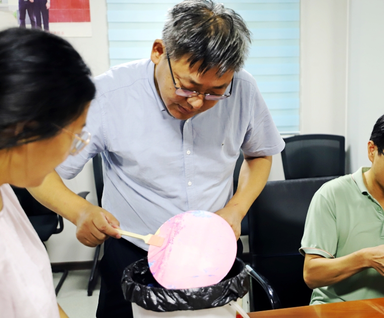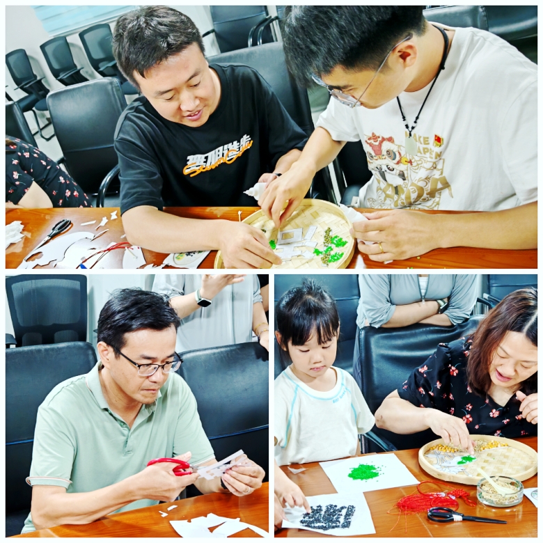 本次活动聚焦“沉浸式、体验式”教育,精心设计四大趣味互动环节:童心绘廉,孩子们执五彩画笔,在素净帆布包上尽情涂色,勾勒出象征高洁的“莲花”、寓意坚韧的“青竹”等廉洁意象;巧手制扇,领导班子成员亲手制作廉洁主题漆扇,于“一转一吹”间体悟清廉守正;五谷寓廉,综合支部与经营支部党员协作拼制“竹匾食画”,以五谷杂粮构图生动诠释“清廉养德”深意;诗韵润心,党员干部与亲子家庭齐声诵读《石灰吟》《爱莲说》,于诗词韵律中感悟坚贞廉洁的品格力量。活动现场气氛热烈,欢声笑语不断,廉洁文化如春风化雨,悄然浸润着每个人的心田。