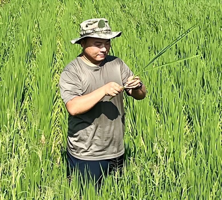 在金庄智慧农业生产示范基地,陈光主要负责水稻、小麦等主要粮食作物的技术与生产管理,成为科技赋能农业的积极实践者。他的工作核心聚焦于科技创新与传统农艺的融合,他是无人机飞防植保“尖兵”,熟练掌握农业无人机操作技术,承担基地大面积作物的精准植保任务。从方案制定、药剂配比、航线规划,到现场飞行操作、效果评估及设备维护,他全程负责,显著提升了植保效率和精准度,有效降低了农药使用量和人工成本,为基地的农业生产节省了大量资源,提高了经济效益。他也是作物全周期“管理员”,全面负责指定区域水稻、小麦的全生育期田间管理。从种植计划落实、品种布局,到播种移栽指导、生育进程监控、群体结构调控,再到关键生育期农艺措施的制定与执行,他一丝不苟,确保作物健康生长,为高产稳产奠定坚实基础。他还是水肥精准“调控师”,依据科学规律,制定并实施精准的灌溉与施肥方案。他密切关注土壤墒情、养分状况及天气变化,负责灌溉系统维护,积极应用水肥一体化技术,优化水肥资源利用效率,保障作物均衡营养,切实提升粮食品质与产量。