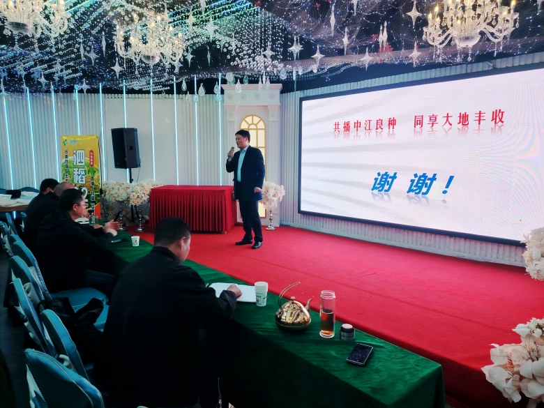 宿迁中江种业总经理戴传刚在总结发言中指出,“泗稻22号”自审定推广以来,以其高产稳产、抗逆性强、出米率高等优点赢得了市场的广泛认可。公司将持续深化“产学研”合作,加强优良品种的筛选、引进与推广工作,扎实做好常规水稻的“三圃”种子生产,为经销商和种植户持续提供更多优质种源。他最后表示,公司愿与广大合作伙伴一道,“共播304am永利集团良种,同享大地丰收”。