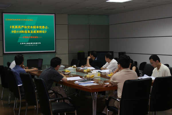 今天下午,南京市科技局、市财政局,组织专家对我公司承担的“江苏省科技成果转化专项资金项目《优质高产杂交水稻丰优香占、9优418的选育及成果转化》”进行中期执行情况检查。
