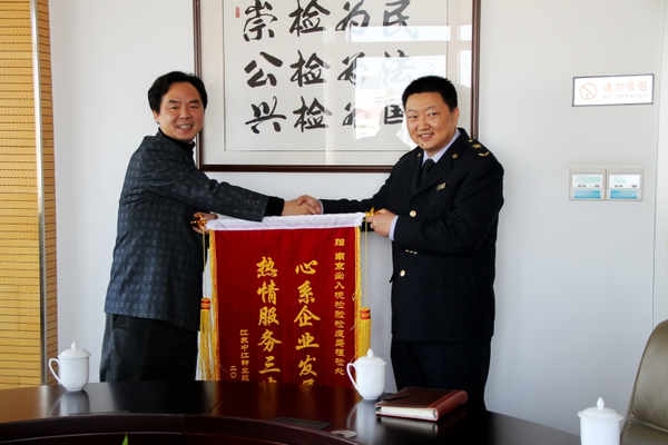 2014年1月2日,公司蒋红云总经理、查军民副总经理携国际贸易部向南京出入境检验检疫局植检处敬献锦旗――心系企业发展,热情服务三农,对该局在公司过去一年农作物种子进出口业务上给予的支持、指导和帮助表示感谢。锦旗交接仪式于该局会议室举行,严继宁副局长、植检处王良华处长、王达龙副处长、丁国云科长等同志参加了锦旗交接仪式。